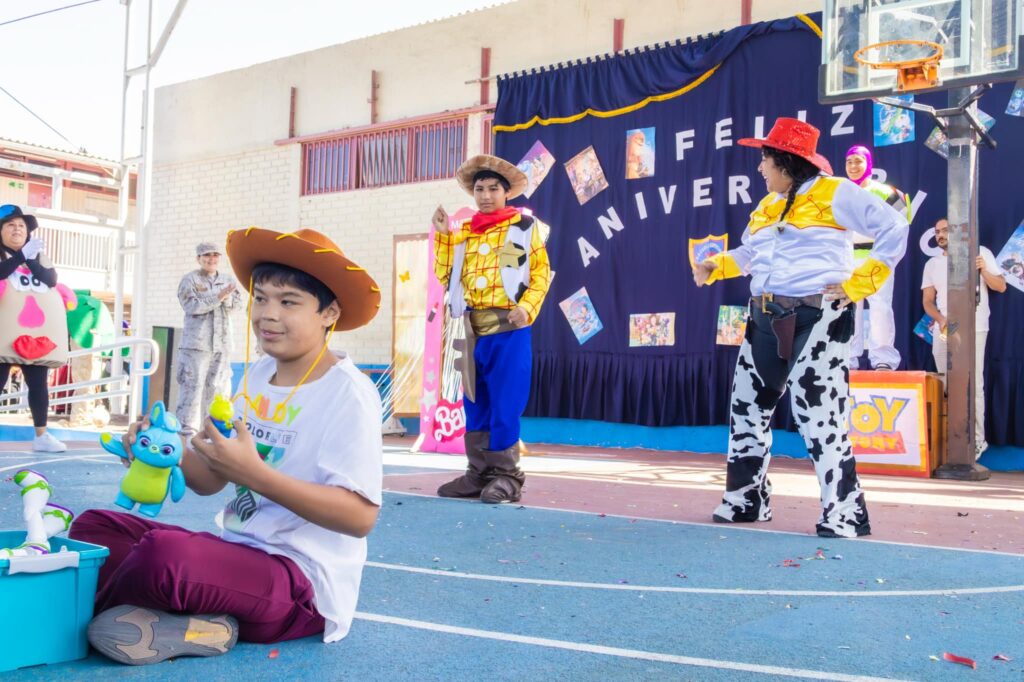 Con una colorida presentación musical la comunidad educativa de la Escuela Especial Flor del Inca celebró su 58° Aniversario al servicio de la educación iquiqueña. Durante el acto, las y los estudiantes recrearon con alegría y entusiasmo reconocidas películas animadas como Alicia en el país de las maravillas, Intensamente y Toy Story.