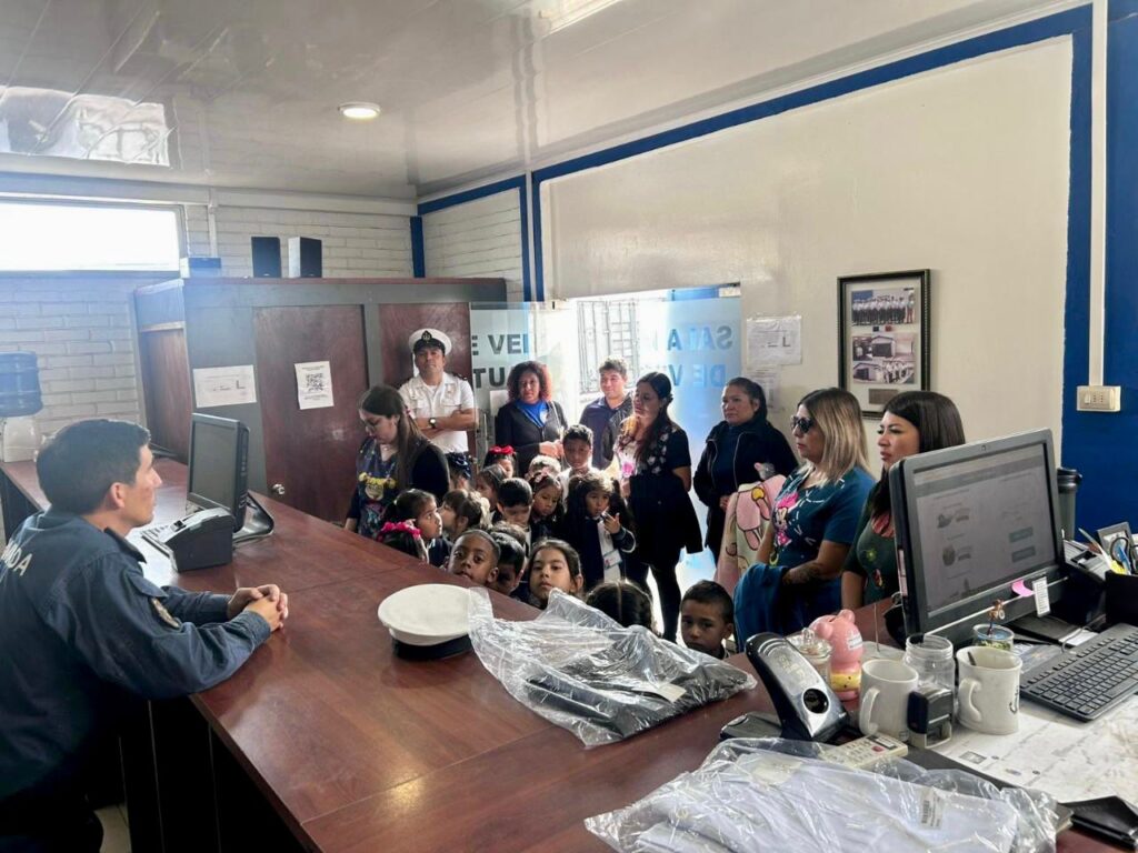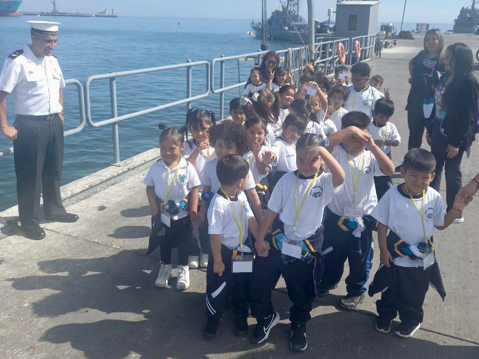 Niñas y niños de prekínder y kínder del Liceo Bicentenario Domingo Santa María, Casa Central Iquique, visitaron la IV Zona Naval acompañados por sus equipos educativos, en el marco de la conmemoración del Mes del Mar.