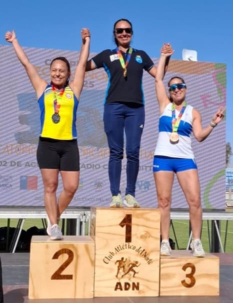 Romina Villar Florido, asistente de educación PIE de la Escuela Plácido Villarroel, consiguió el primer lugar en lanzamiento de martillo y lanzamiento de martelete y tercer lugar en lanzamiento de bala.